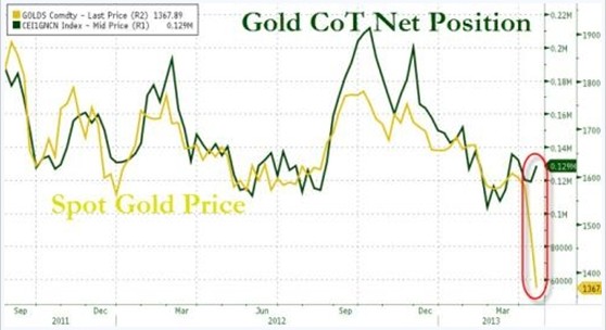 现在只剩下CFTC管理的期货仓位了。不幸的是,我们只有截至4月9日的数据,不包括黄金抛售的那段时间。尽管如此,历史数据显示这两者具有很强的相关性。因此,看起来CFTC的仓位应该骤减,但是我们必须到下周才能确定。