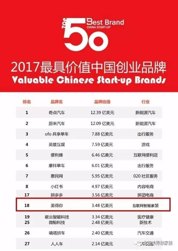 最近刚刚在北京大学颁发的“最具价值中国创业品牌TOP50”,光评选就历时半年,从十大行业近万家创业企业中评选出了50个最具价值的创业品牌,能够成为其中的一员,美得你家装可谓是“大数据”时代真正的佼佼者。